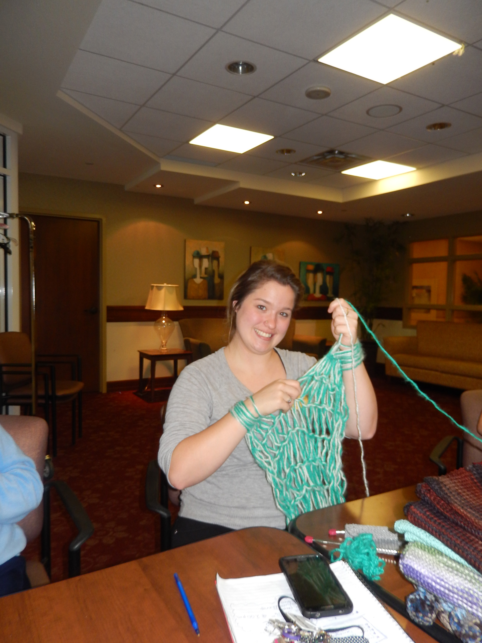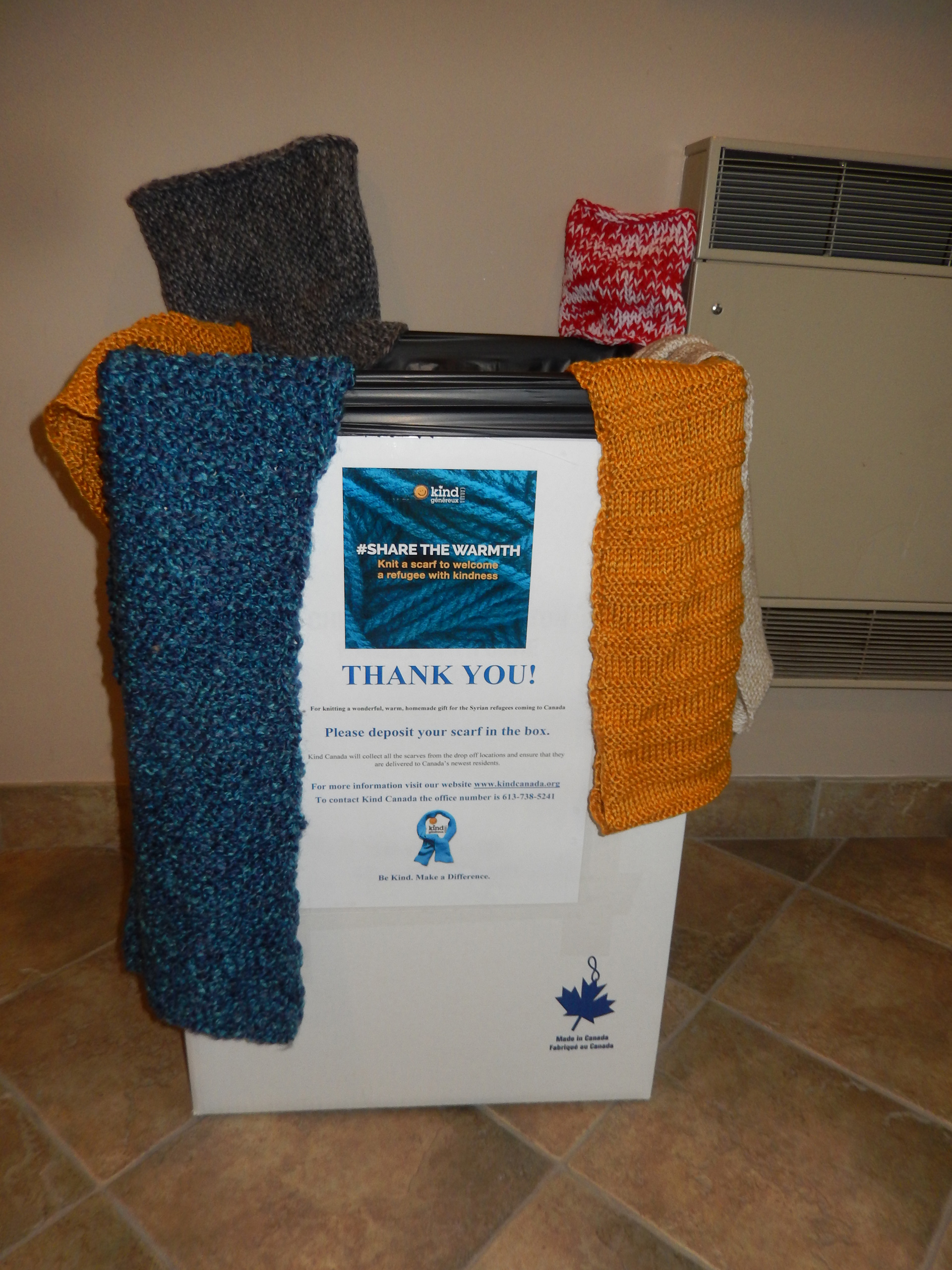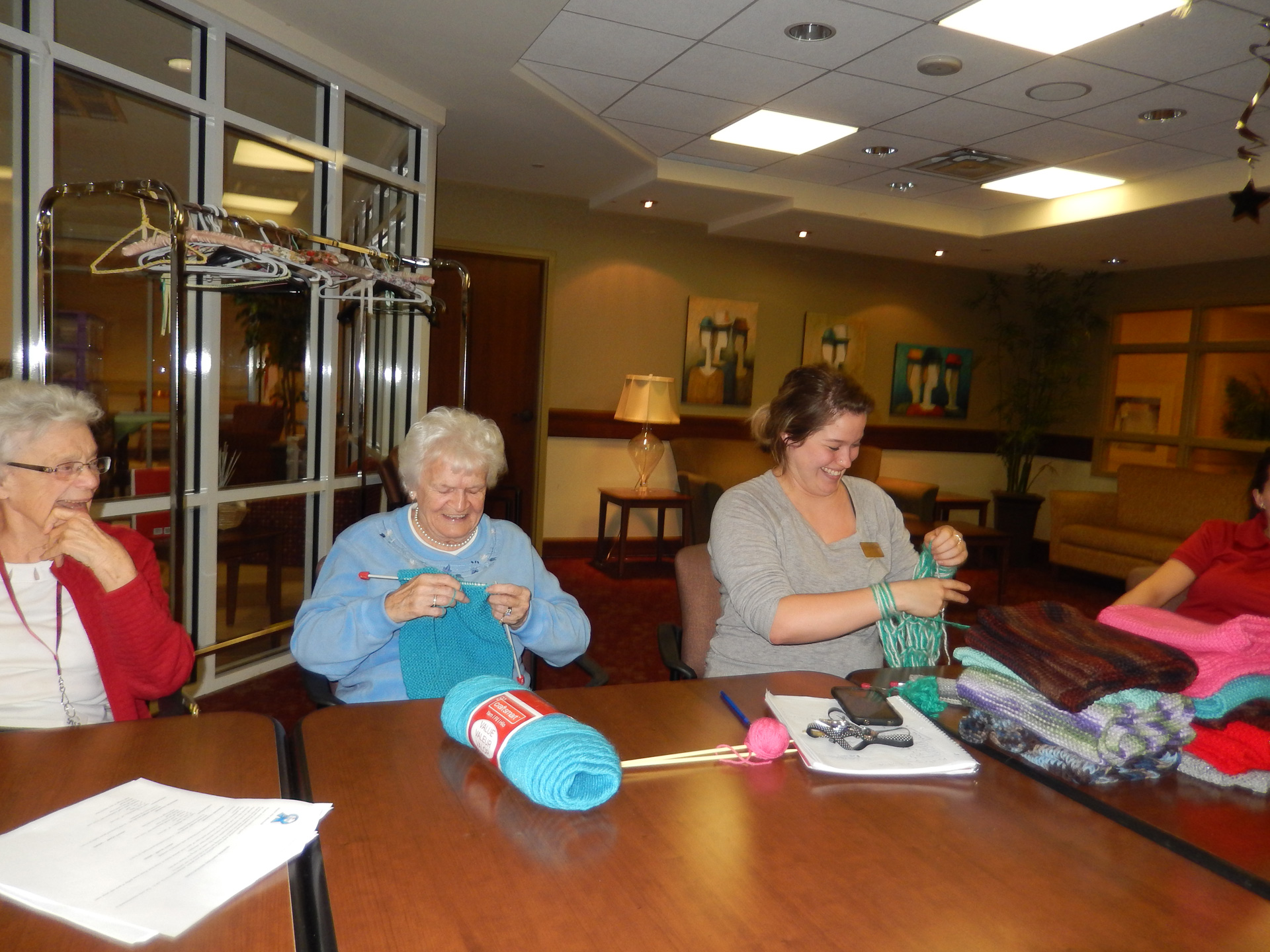 Jeff Turner, Rabbi Bulka and Nancy Oakley went to meet Jessica Dube, Recreation Manager, and the Knitting Club at the Ravines Seniors’ Suites & Retirement Residence. The knitters have completed 11 beautiful handmade scarves for the refugees, and the knitting fun continues.