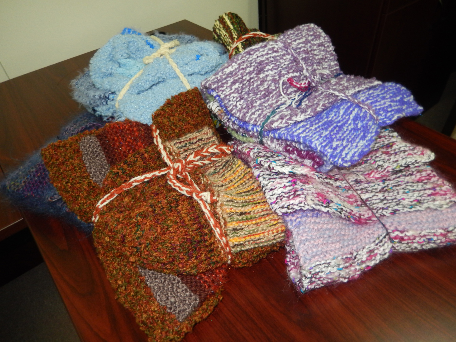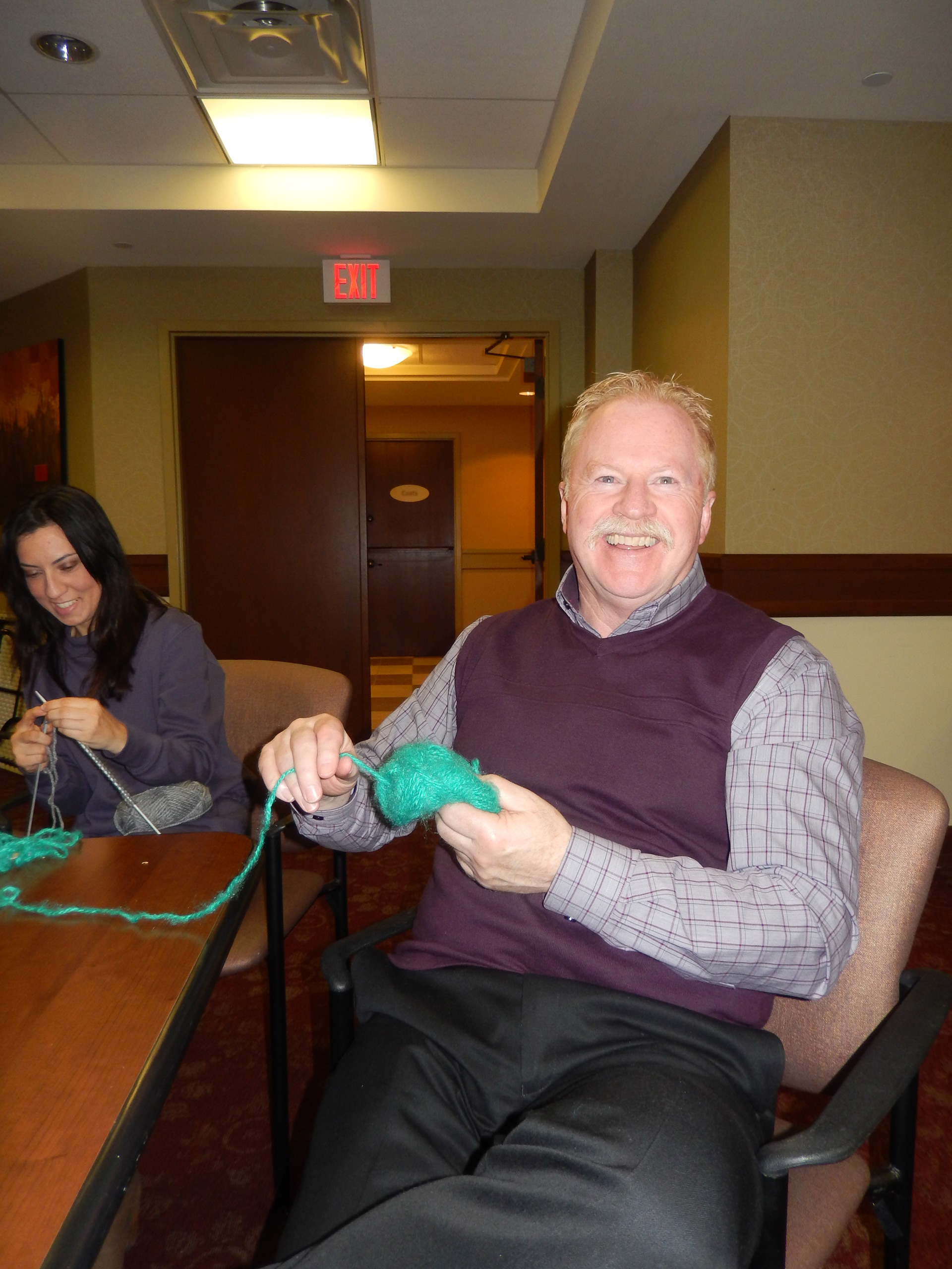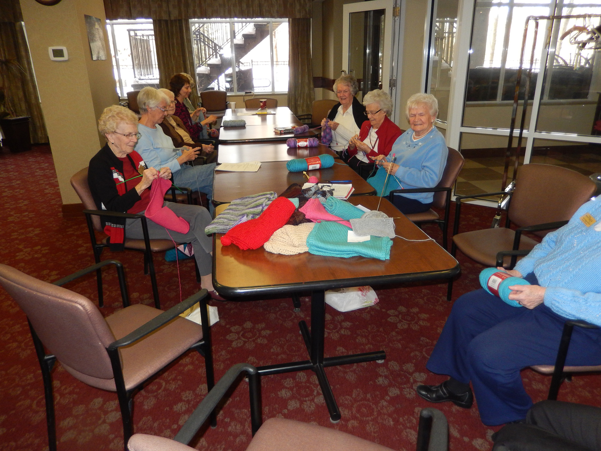 Jeff Turner, Rabbi Bulka and Nancy Oakley went to meet Jessica Dube, Recreation Manager, and the Knitting Club at the Ravines Seniors’ Suites & Retirement Residence. The knitters have completed 11 beautiful handmade scarves for the refugees, and the knitting fun continues.