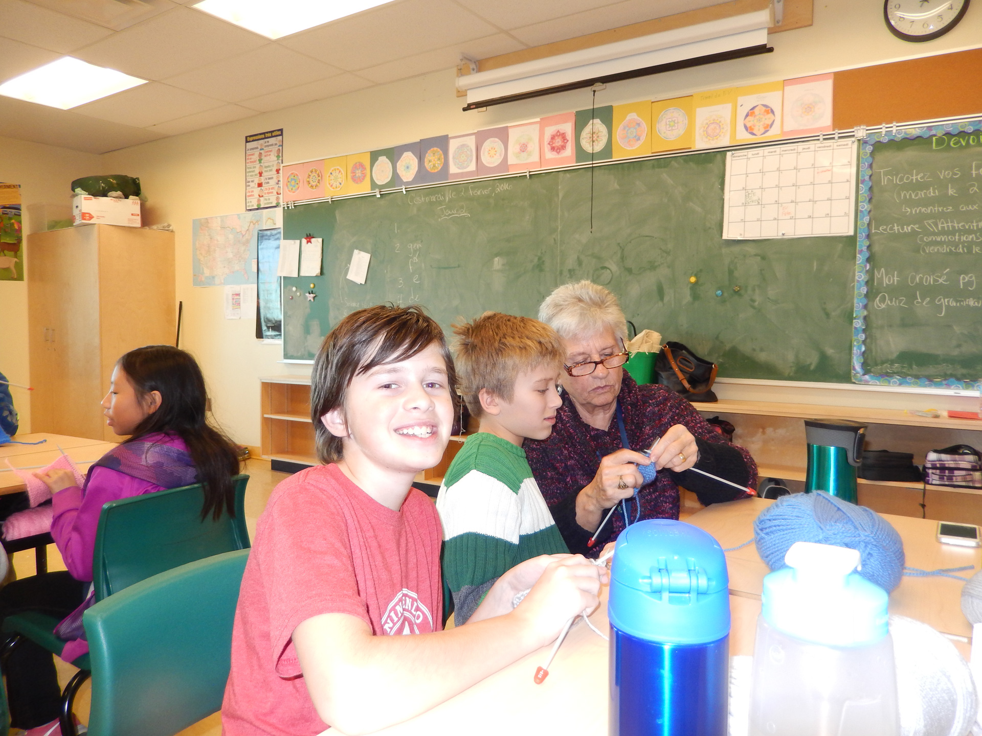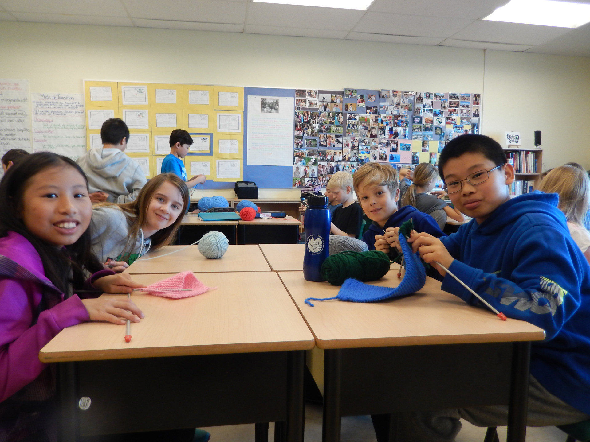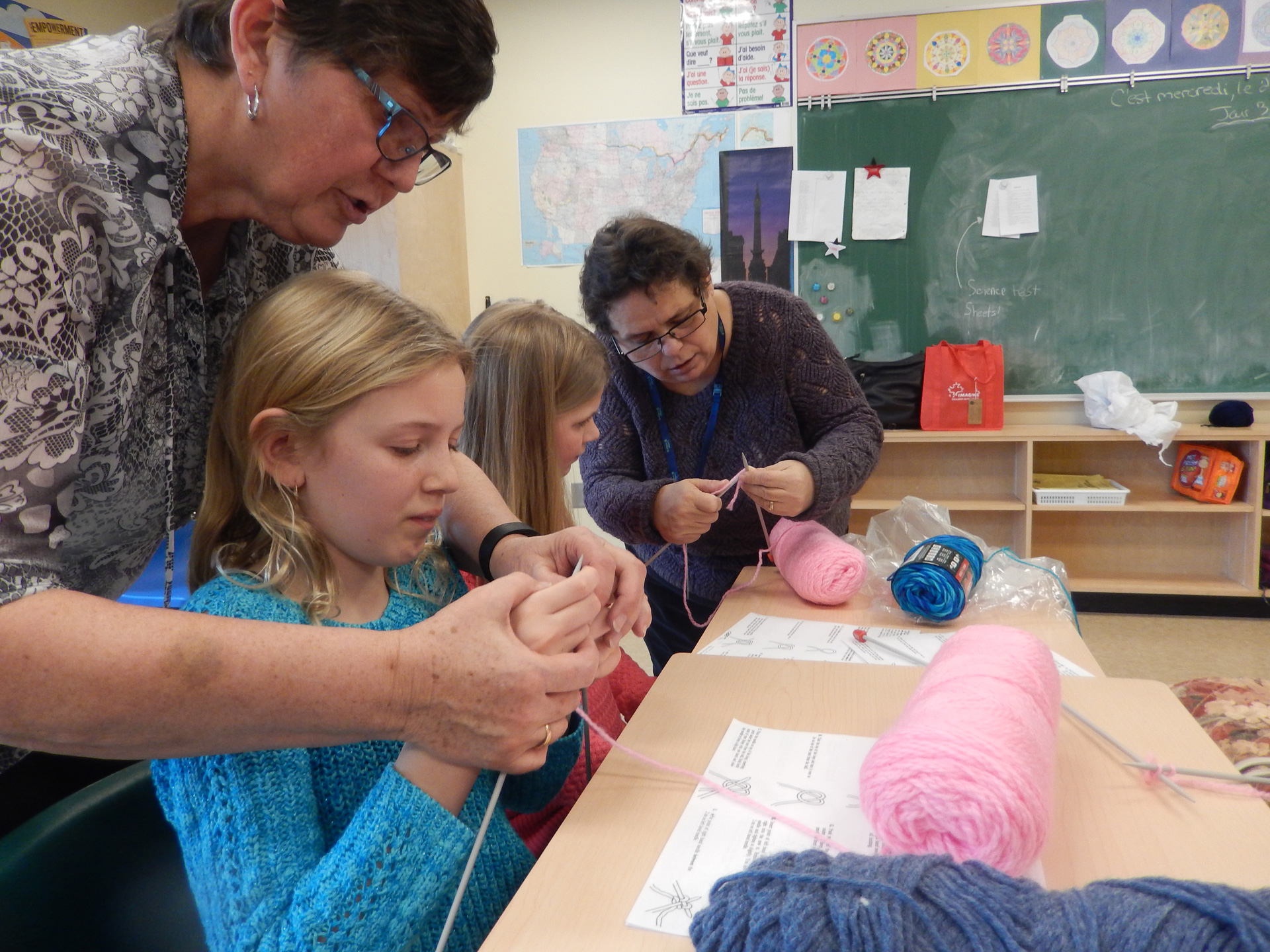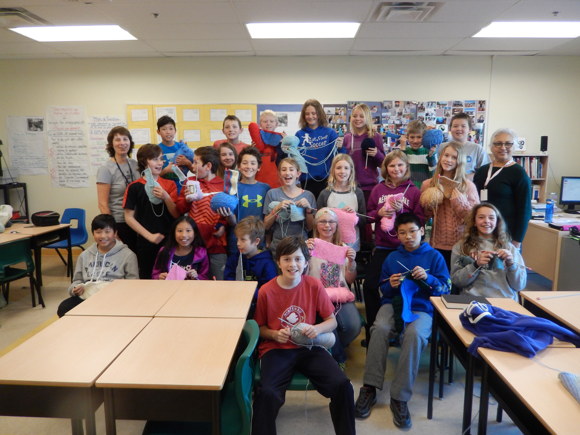 Mr. Tremblay’s grade 6 class at Steve MacLean Public School showed off their knitting progress as part of Share the Warmth. A group of volunteers from Ottawa’s Good Companions Senior Centre, and the Multicultural Liaison Officer, staff and volunteers from the Ottawa Carleton District School Board all gathered together to teach the students to knit. The students were fast learners, and really enjoyed the experience of learning to knit, being kind and having fun all at the same time. Thank you for your spirit of generosity, attention to detail, creativity, and kindness.