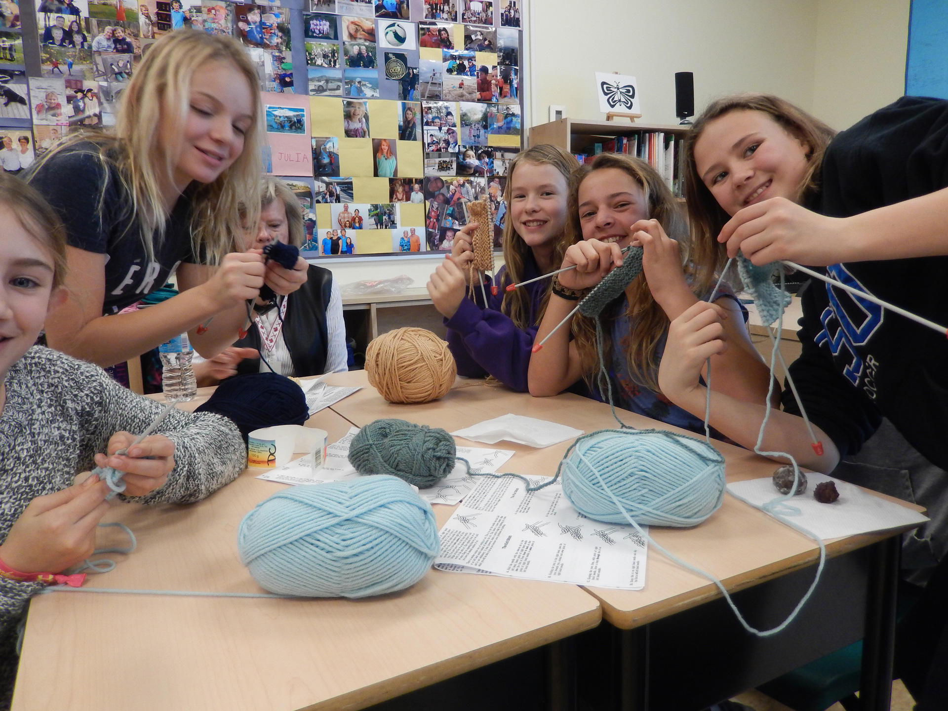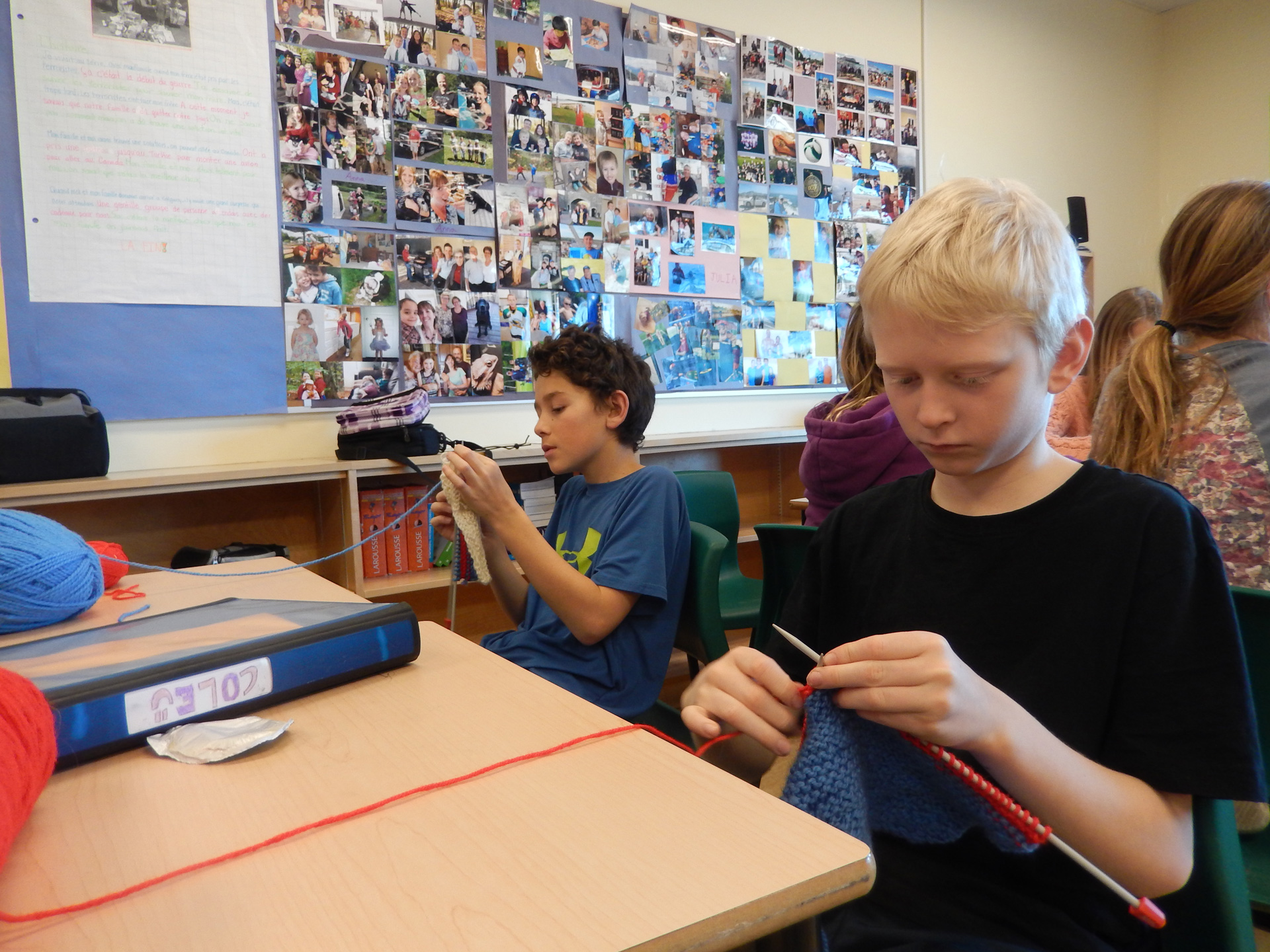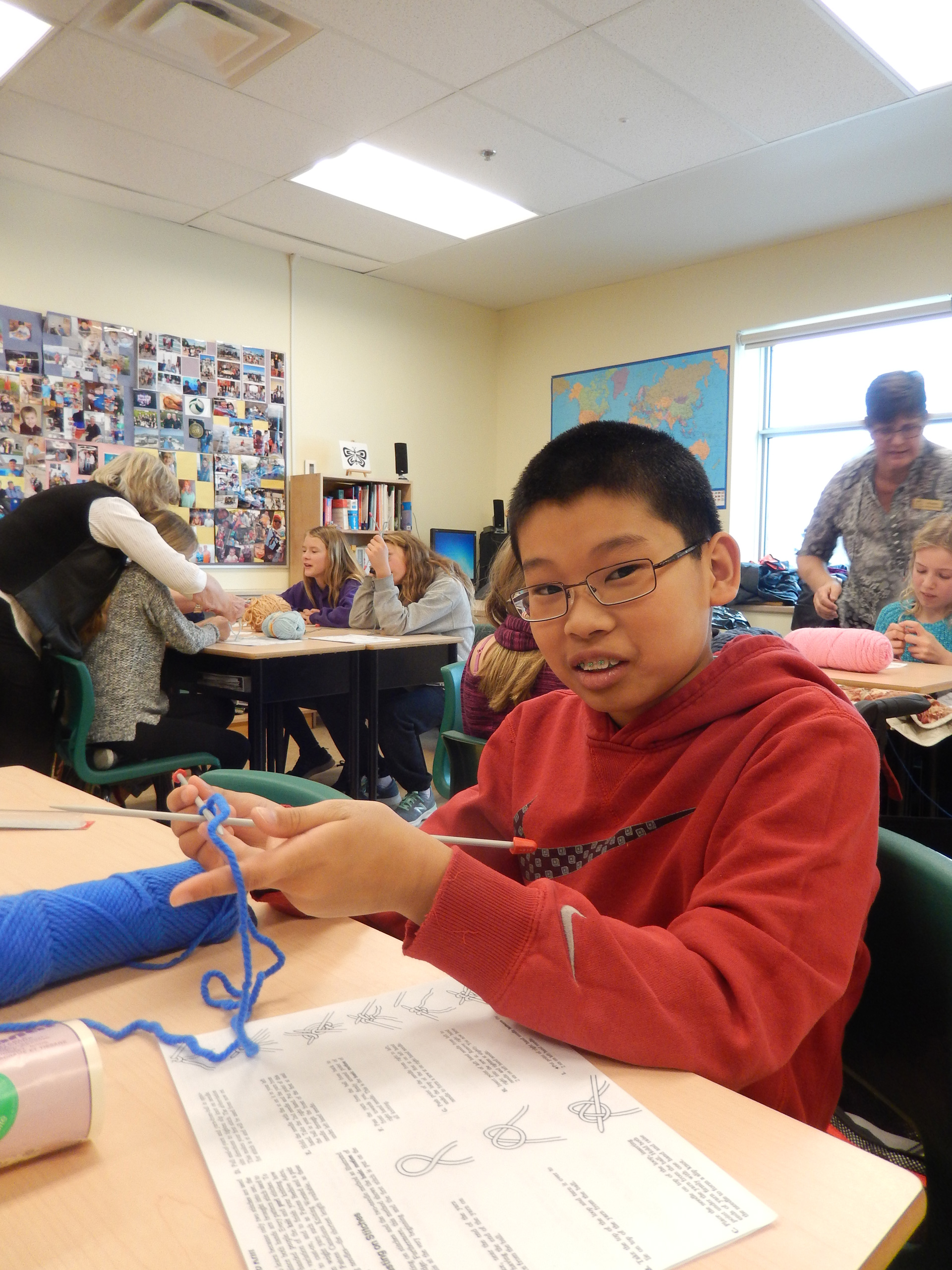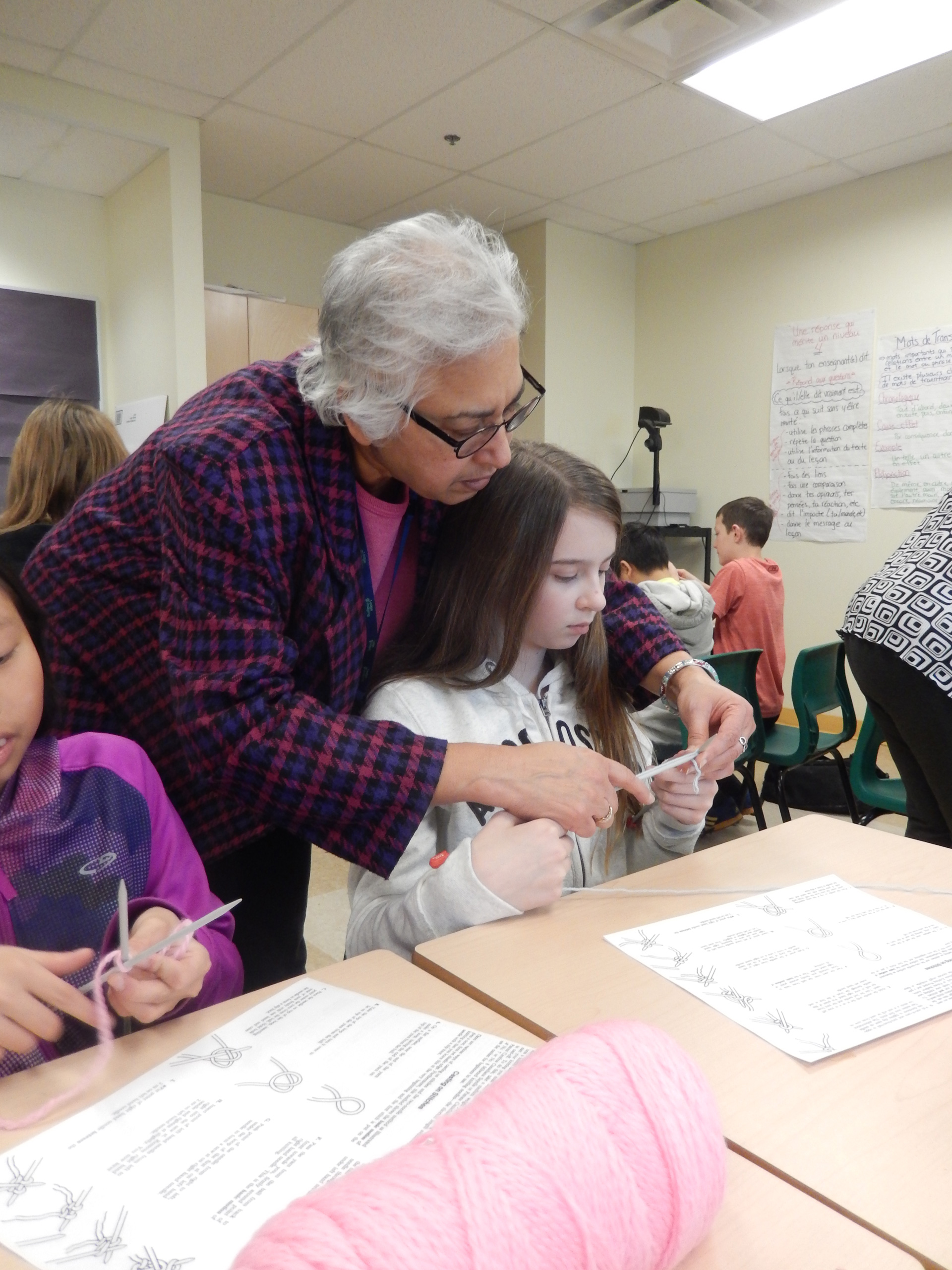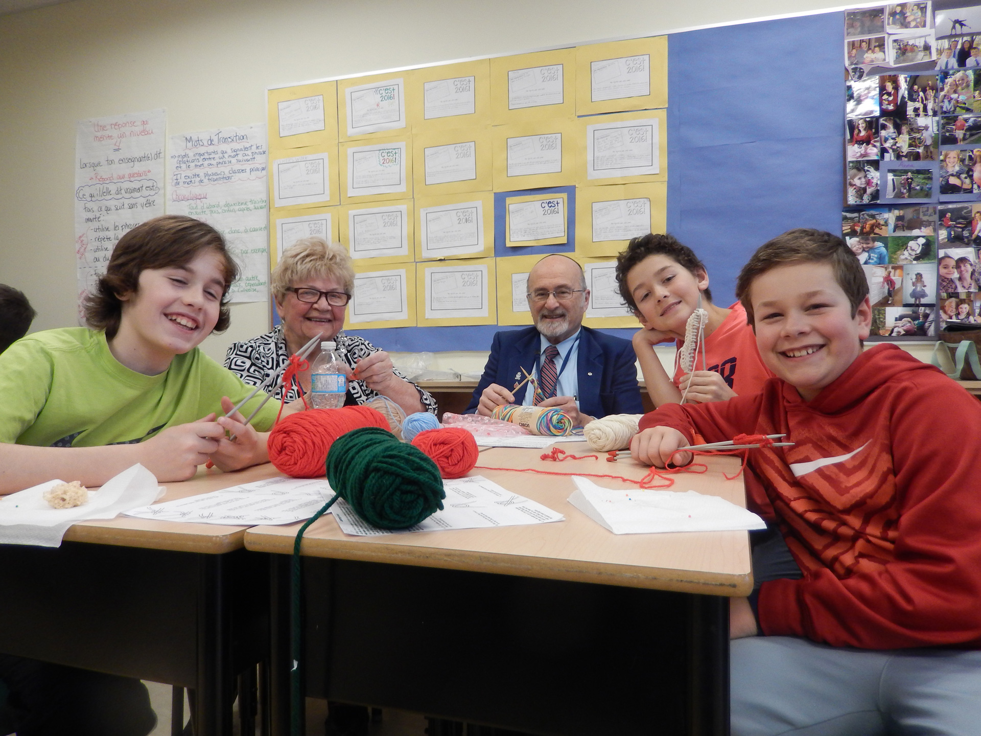Mr. Tremblay’s grade 6 class at Steve MacLean Public School showed off their knitting progress as part of Share the Warmth. A group of volunteers from Ottawa’s Good Companions Senior Centre, and the Multicultural Liaison Officer, staff and volunteers from the Ottawa Carleton District School Board all gathered together to teach the students to knit. The students were fast learners, and really enjoyed the experience of learning to knit, being kind and having fun all at the same time. Thank you for your spirit of generosity, attention to detail, creativity, and kindness.